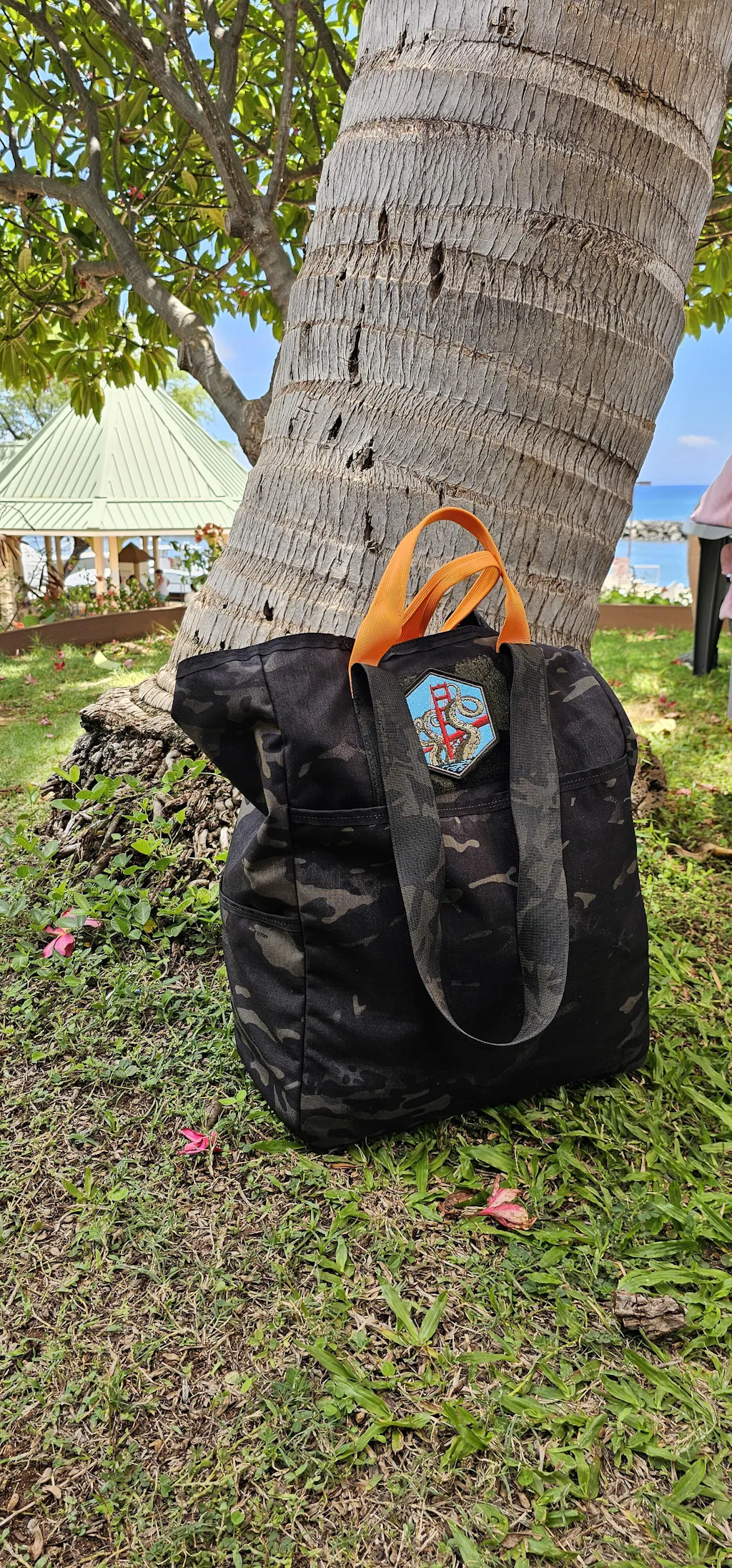 The CaB-2 is a heavy-duty carry-all tote bag built for field, camp, shop, and everyday use. Constructed from 500D Cordura nylon with full-wrap webbing reinforcement, it carries over 50 lbs of load, from firewood and recovery gear to groceries and tools. Six exterior organizer pockets, two sets of handles (short grab handles and long shoulder straps), and an interior sized to nest a standard American paper grocery bag. Made in Washington State, USA.