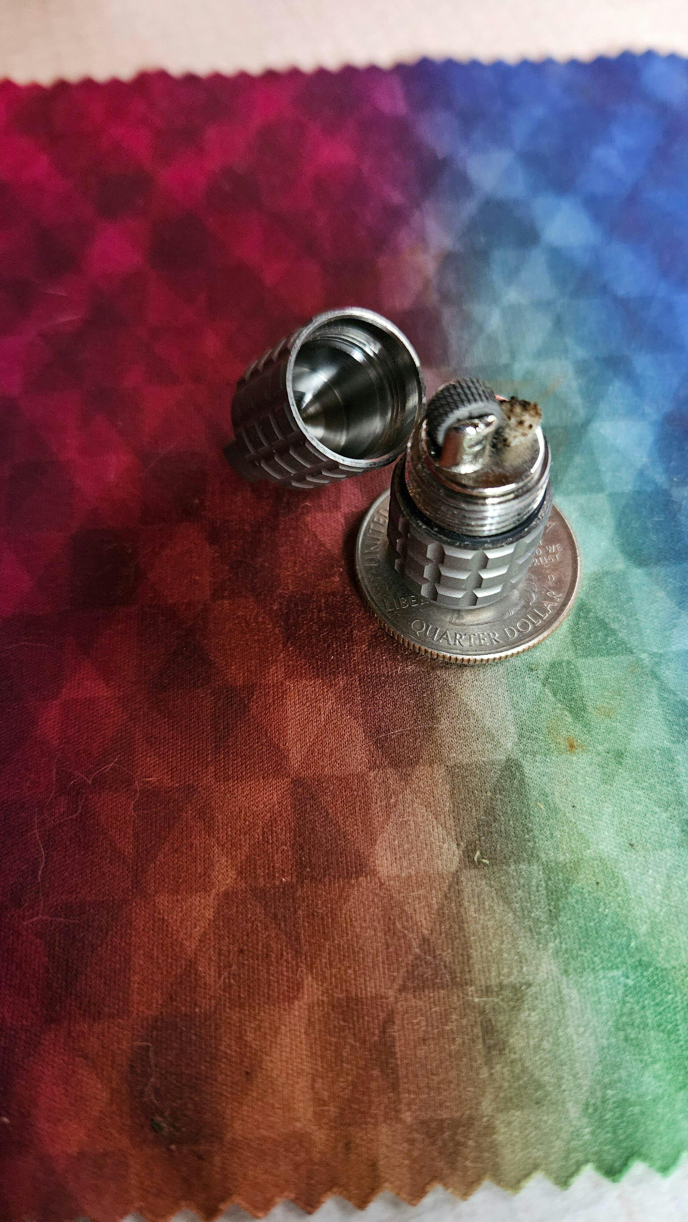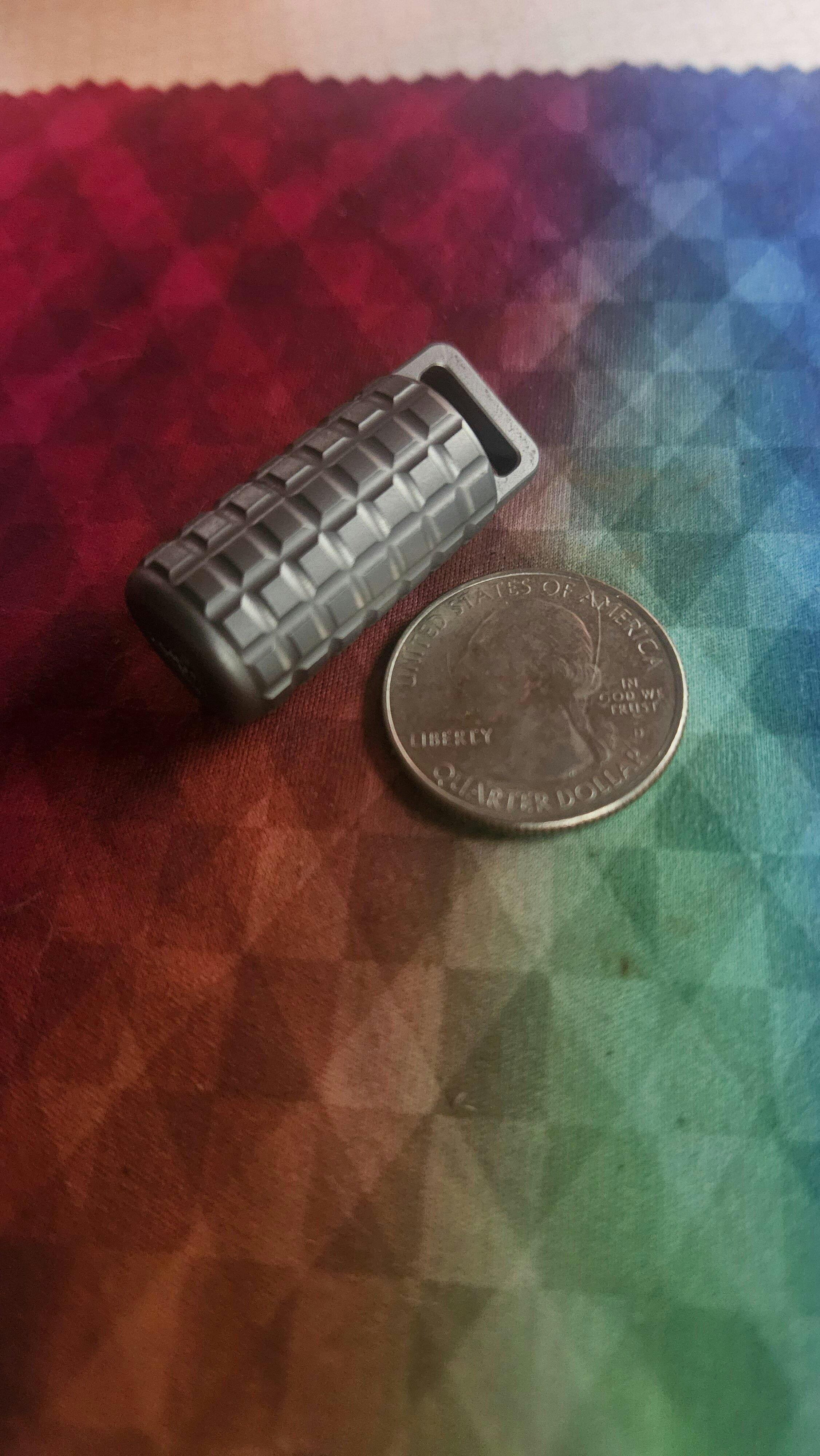 I just opened this now, and fiddled with it a bit to get familiar with the function and feel. This is an amazing little lighter. it is quite small, even for me and my hands are small, and took a few minutes to find the strat to open it one handed. its that small. My indended use for this is a backup flame when my main runs out, which is small enough to be a keyring accessory for my wallet chain EDC tools. Great durability, amazing satisfaction holding and feeling the frag design. its a bit expensive for such a small lighter, but with materials, proper care, and making sure you wont lose it, will well serve you in what you pay for here. I could see others powder coating or anodizing this. Titanium is an amazing metal, making this product with it makes me rate 5 stars. I just wish the company would reach back out to consumers, as I emailed about this, but never heard anything back. But thank you PDW for the mighty little friend with me on my journeys !